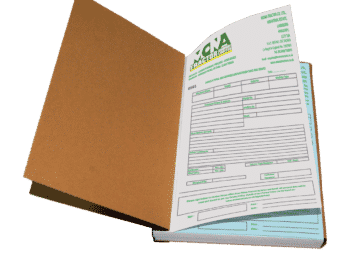 NCR books and pads are commonly bound with plain buff covers. However, it is perfectly possible to have covers of a different colour, especially if you want different types of forms bound in different colours for easy identification. Blue for invoice books and red for delivery notes, for example.