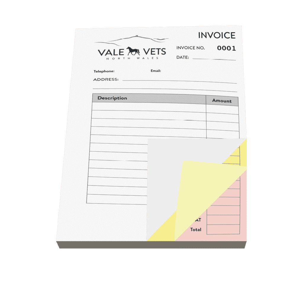 It is also possible to have printing on the reverse of the sheet, too. Typically, Terms & Conditions would be printed on the reverse of the customer copy but not on office copies retained by you.