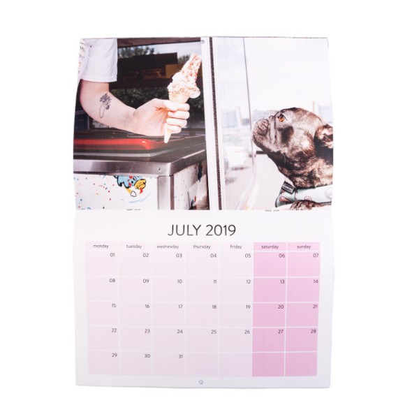 - A3 booklet style. Each month with one super large A4 landscape picture and an A4 date grid underneath.